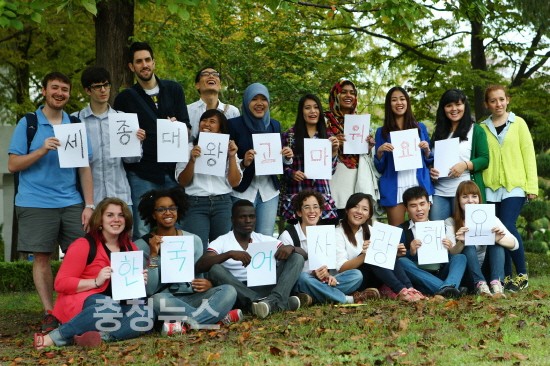 ▲ 지난해 외국인 한국어 말하기대회에서 참가자들이 피켓을 들고 기념사진을 찍고있다.