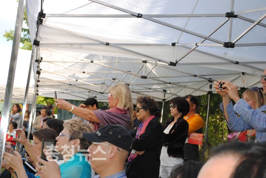 ▲ 14개국에서 온 유명작가들이 이날 행사를 휴대폰 동영상을 촬영하고 있다