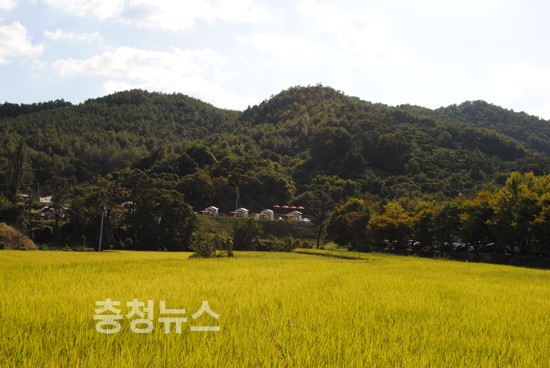 ▲ 황금빛 논밭위로 미술관과 방갈로 산책로 등이 전경이 보이고 있다