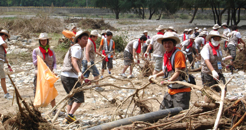 수해복구 봉사활동은 21일부터 4박5일간. 이번 집중호우로 큰 피해를 입은 강원도 영월군 주천면 일대다. 봉사활동 내용은 주천면사무소에서 지시하는 일을 집중적으로 했다. 주로 감자캐기, 벼일으켜세우기, 농로 보수, 수해로 무너진 하천정비 등을 하며 수해의 아픔를 같이 했다.
