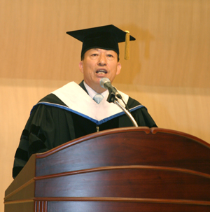 ▲ 설동호 총장 27일 오전 11시 한밭대 문화예술관에서 열린 제5대 한밭대 총장 취임식에서 설동호 총장은 취임사를 통해 ‘미래형 선진대학으로의 육성’을 강조했다. 이날 정진철 대전행정부시장과 열린우리당 이상민의원, 대학 총・학장, 한밭대 총동문회장 등 500여명이 참석해 설동호 총장의 취임을 축하했다. 이날 취임식에서 설동호 총장이 21세기형 선진대학으로의 육성하기 위해 밝힌 학교 운영방안은 다음과 같다. 첫째, 세계화 시대를 선도하는 교육과 연구를 실현하겠다.둘째, 특성화된 초일류의 산학협력 대학을 만들겠다. 셋째, 대학발전의 기본이 되는 재정을 더욱 튼튼히 하겠다. 넷째, 구성원 모두가 화합해 좋은 대학을 만들어가는 혁신의 장을 열겠다. ▲ 설동호 총장 취임식에 참석한 내빈들