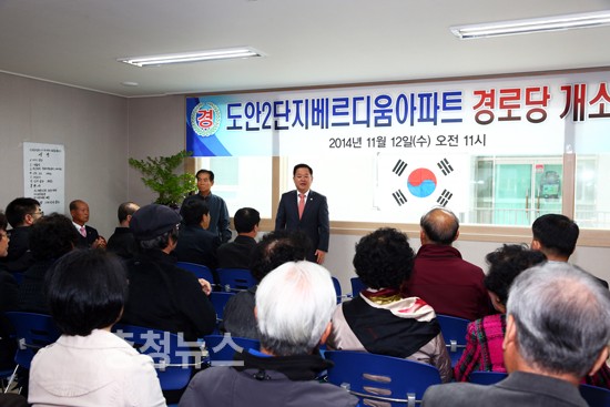 ▲ 유성구의회 권영진 부의장은 호반 베르디움 아파트, 경로당 개소식