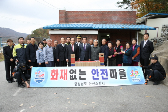 논산소방서(서장 류봉희)는 12일 오후 2시 계룡시 엄사면 광석2리 마을회관에서 최홍묵 시장을 비롯한 의용소방대원 등 50여명이 참석한 가운데 “화재 없는 안전마을” 현판식을 가졌다.