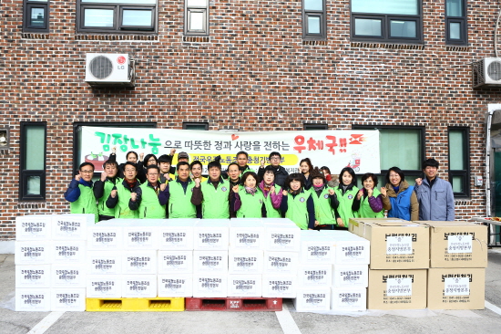 이번 김장 나눔을 통해 우정노조 충청지방본부는 동절기를 맞아 외롭게 지내는 독거노인과 불우한 이웃들에게 직점 담은 김치 150박스, 김 70박스 등 생필품을 전달해 연말연시 따뜻한 “정”을 나눴다.