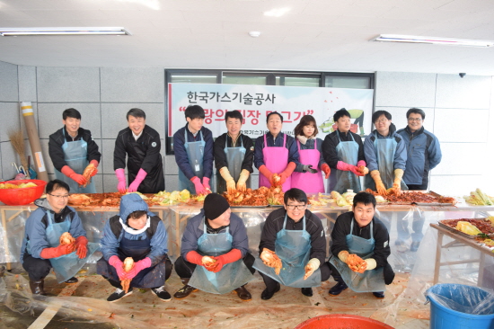 한국가스기술공사(사장 이석순) 본사 사랑나눔봉사단은 2일 지역 장애인 보호시설 푸른초장을 찾아 '사랑의 김장담그기' 봉사활동을 실시했다.