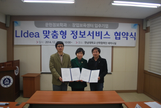 이날 협약의 골자는 ‘정보검색서비스’, 한남대 창업보육센터에 입주해 있는 가족기업들에게 전문적인 학술 및 기술 정보 검색서비스를 문헌정보학과에서 서비스해주는 내용이었다. 앞으로 문헌정보학과는 특허 출원 등을 위해 기업들이 필요로 하는 학술 및 기술 정보를 대신 수집하고 분석해서 제공하게 된다.