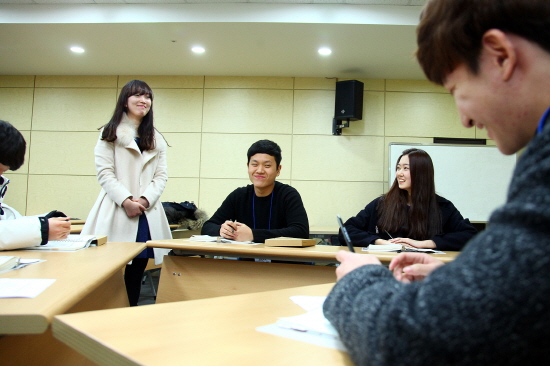 2015학년도 한남대 수시합격생 100여명이 7일 학교에 모여 '이끌림 셀프리더십'을 통해 성공적인 대학생활을 준비하고 있다.