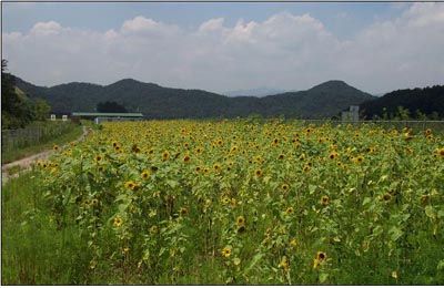 대전시 중구(구청장 李殷權)는 뿌리공원에 관람객에게 다양한 볼거리를 제공하기 위해 부순환고속도로 복개광장내 공한지를 활용 2,000㎡의 해바라기 꽃단지를 조성하였다.