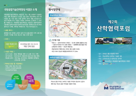 한남대 국방융합기술인력양성사업단(단장 은성배 교수)은 12일 오후 4시 교내 56주년기념관에서 제2차 국방 산학협력포럼을 개최한다.