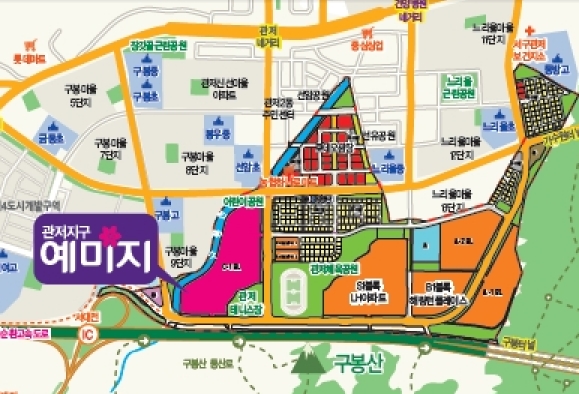 금성백조는 무엇보다 관저 예미지가 남향 위주의 배치로 대전의 8경 중 하나인 구봉산을 조망할 수 있으며 단지 바로 앞 관저테니스장과 관저체육공원(축구장)을 가까이 이용할 수 있다는 점을 적극 홍보했다.