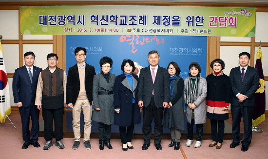 이번 간담회는 정기현 의원을 좌장으로 김영노 대전대신고 교장, 조진형 대전시교육청 장학사, 조현희 대전중앙초 교사, 허광윤 흥도초 학부모가 참여하여 혁신학교 운영·지원을 위한 조례 제정과 관련하여 토론이 이루어졌다.