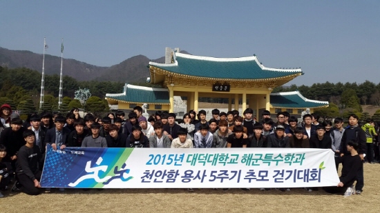 대덕대 군사학부 해군특수학과(해양기술부사관과, 함정기술과, 해양수중과)는 21일 국립 대전현충원에서 열린 천안함 용사 5주기 추모 걷기 행사에 참여했다고 23일 밝혔다.