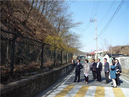 사회도시위원회(위원장 조재철)에서는 해빙기를 맞아 절개지나 급경사등 재해위험지역에 대하여 집중적으로 현장점검을 실시하며 관계자로부터 관리실태 등에 대한 보고를 듣고 현장을 확인한 후“안전에 대해서는 아무리 강조해도 지나침이 없으므로, 수시로 안전점검을 실시하여 안전사고를 미연에 방지할수 있도록 현장관리에 철저를 기하여 줄 것”을 당부 하였다.