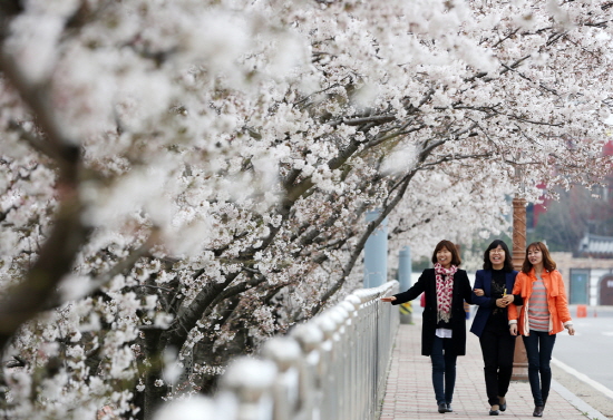 해미천변 2.2Km 가로수길 300여 그루 벚꽃 나무, 일제히 만개 서산시 해미면 해미천 일대에 벚꽃이 만개했다. 9일 서산시에 따르면 해미천변 2.2Km의 가로수길 300여 그루의 벚나무가 최근 일제히 꽃을 활짝 피웠다. ▲ 해미천 벚꽃 흐드러지게 핀 벚꽃은 생태하천인 해미천과 조화를 이루며 멋진 장관을 연출한다. 해미천 벚꽃은 다음주 중반까지 볼 수 있을 것으로 전망된다. 한편 11일 해미천 일대에서는 만개한 벚꽃을 보며 음악을 감상할 수 있는 ‘벚꽃 음악회’가 오후 2시부터 열린다. 저작권자 © 충청뉴스 무단전재 및 재배포 금지 김거수 기자 다른기사 보기 기사가 마음에 드셨나요? 충청뉴스 좋은 기사 후원하기 1,000원 3,000원 5,000원 10,000원 30,000원 50,000원 직접입력 비회원 약관동의하기 ※ 소중한 후원금은 더 좋은 기사를 만드는데 쓰겠습니다.