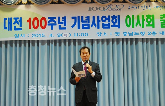 “대전의 정체성확립과 시민의 화합을 도모하고 꽃과 숲 등 환경사랑을 통한 관광의 활성화, 예체능의 생활화와 예절, 칭찬, 친절로 행복한 세계시민”란 슬로건으로 하는 ““대전 100주년기념 사업회 이사회”가 9일 옛 충남도청 대회의실에서 출범했다.