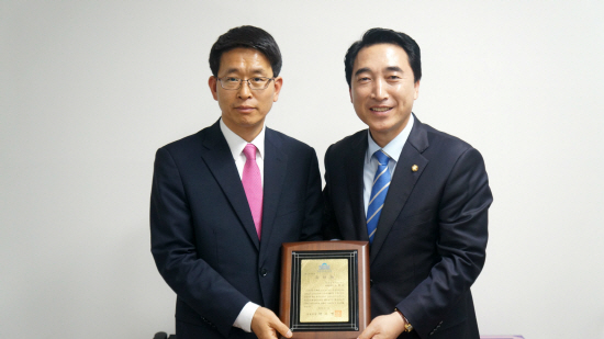 ▲ 박수현 의원이 노병국 본부장에게 감사패를 전달하고 있다