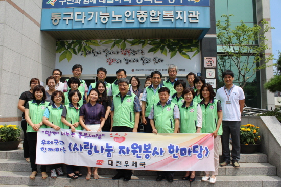 대전우체국(국장 이완직)이 직원들과 함께 지난 3일 대전시 동구 판암동에 위치한 동구다기능노인종합복지관을 찾아‘행복나눔 릴레이 봉사활동’을 펼쳤다.