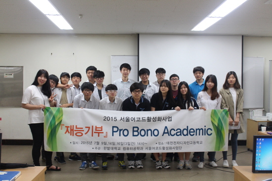 한밭대 서울어코드활성화사업단(단장 김차종)은 7월 14일, 16일 대전전자디자인고등학교 어플 제작반 학생들에게 ‘모바일 어플리케이션(application, 이하 어플) 제작’을 도와주는 재능기부 프로그램을 진행한다.