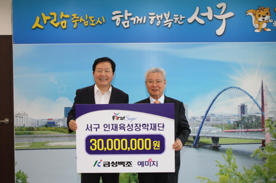 ㈜금성백조주택 정성욱 회장은 “서구 구민으로서 모범자치도시 서구의 인프라와 시민을 위한 행정에 무한한 감사와 편의를 체감하며 살고 있다. 지역 건설사로서 관내 어려운 가정의 학생들을 도울 수 있어 영광이다.”고 소감을 밝혔다.