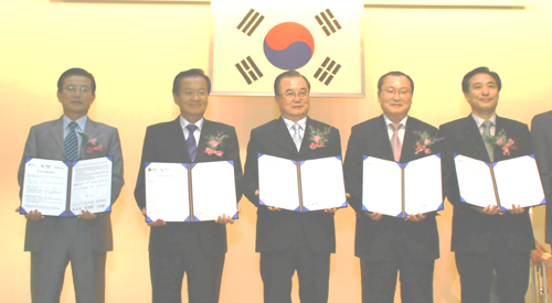 | ▲ 선양 김광식 사장, 가야곡왕주, 진미식품 송인섭 대표, 대전지방노동청장 김맹룡, 한국폴리텍대학 김제영 학장<좌부터> | ||