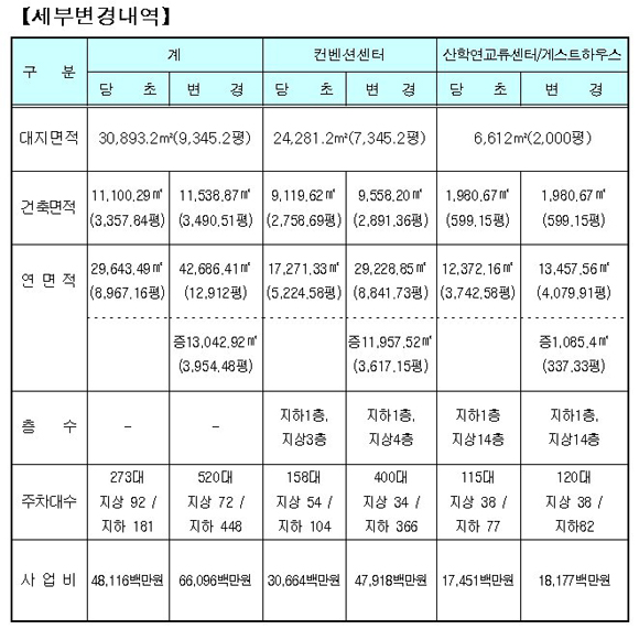 대전시 관계자는 설계변경의 불가피한 사유로 “타 지역 컨벤션 센터보다 규모가 작어 대규모 국제회의 유치에 어려움이 예상 된다”는 것이다.