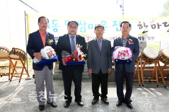 유성구의회 권영진 부의장과 민태권·송봉식 의원은 23일 세동 밀쌈마을 축제에서 진잠 농촌지역 발전을 위해 기여한 공로를 인정받아 감사패를 받았다.