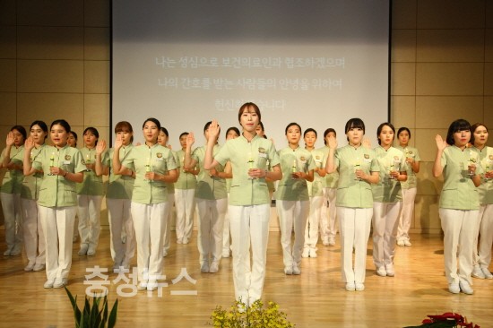 한남대 간호학과 4학년 학생 39명은 나이팅게일의 사랑과 봉사정신을 이어받아 병자와 소외된 자들에게 밝은 빛이 되고 일생동안 의롭게 간호사로서 최선을 다할 것을 다짐했다.