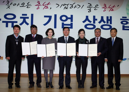 ▲ 당진시가 11월 20일 충남도청 대회의실에서 ㈜유성티엔에스, 대한철강(주), ㈜명륜철강과 357억원 규모의 투자협약을 체결했다.