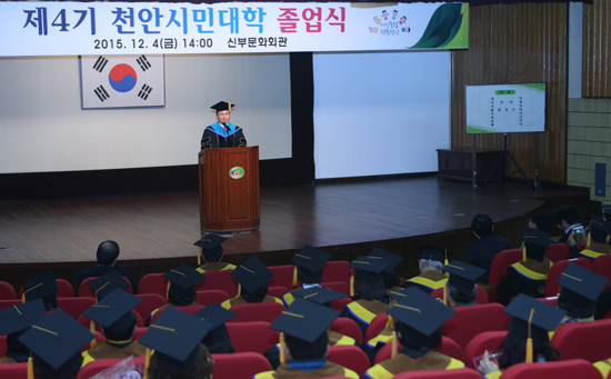 충남 천안시가 4일 오후 신부문화회관에서 졸업생 80명이 참석한 가운데 “제4기 천안시민대학 졸업식”을 개최했다.