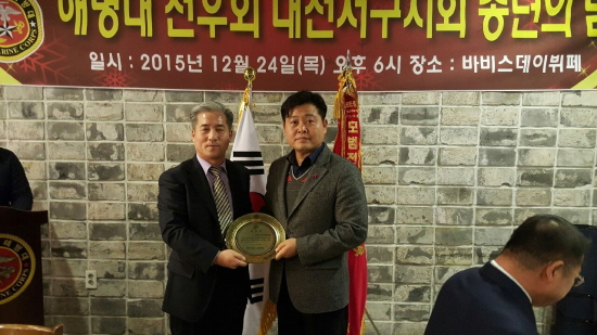 대전 서구의회 이한영, 조성호 의원이 지난 24일 오후 서구 변동 바비스데이 뷔페에서 열린 해병대전우회 ‘2015 서구지회 송년의 밤’행사에서 평소 해병대전우회서구지회 발전에 기여한 공이 인정되어 감사패를 받았다.