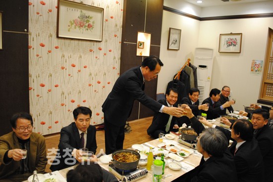 ▲ 국민의당 한현택 위원장 건배사를 하고 있다