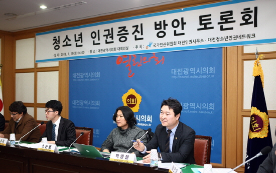 대전시의회 박병철 의원(더불어민주당, 대덕구3)이 19일 시의회에서 국가인권위원회 대전인권사무소, 대전청소년인권네트워크 주최로 개최된 ‘2016 청소년 인권증진 방안 토론회’에 참여했다.