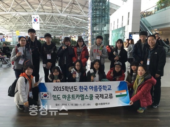 아름중학교(교장 사진숙, 이하 아름중)가 인도의 찬디가르에 소재한 인도 마운트 카멜 학교(교장 Dr. Charles Samuel, 이하 카멜 학교)로 교류학습을 떠났다.