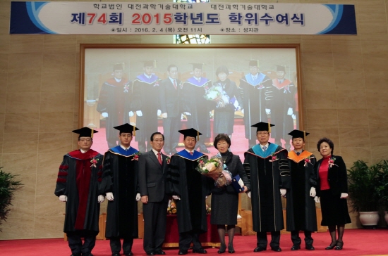 대전과학기술대학교가 4일 교내 성지관에서 열린 2015학년도 학위수여식에서 간호학과 졸업생(1980년 졸) 임정자(58세, 여) 씨에게 자랑스러운 혜천인상을 수여했다.