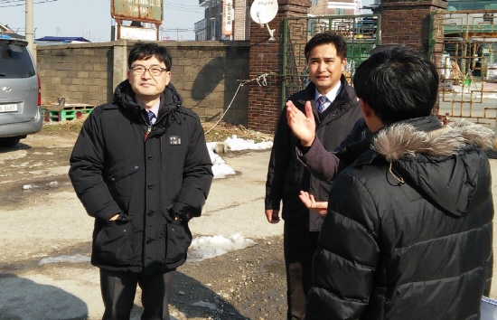 충남도의회 김용필 의원(예산1)이 2일 폐공장 해결책 모색을 위해 김하균 도 경제산업실장을 비롯한 관계 공무원과 폐공장 일대를 살폈다.