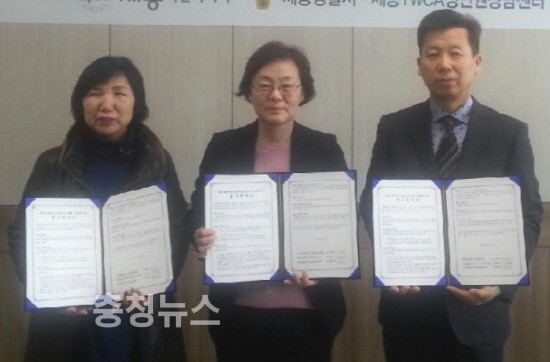 세종특별자치시(시장 이춘희)가 성폭력, 가정폭력 피해 여성 임시 보호와 지원을 강화하기 위해 11일 세종시청에서 세종경찰서, 세종YWCA 성인권상담센터와 업무협약식을 가졌다.