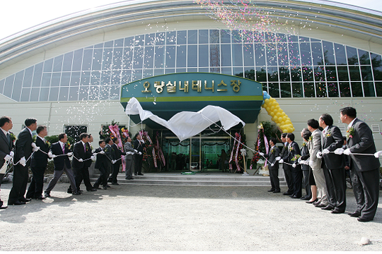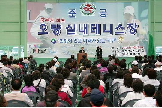 대전시 서구는 26일 오전, 가기산 서구청장을 비롯해 각급 기관단체장, 지역주민 등 400여명이 참석한 가운데 테니스코트 3면, 샤워실, 휴게실, 주자장 등의 부대시설을 갖춘 '오량 실내테니스장' 개관식을 가졌다.
