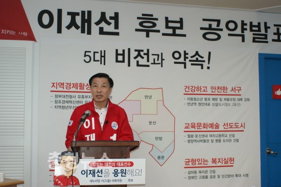 새누리당 이재선 서구을 후보가 건전한 사회, 미래 발전적 서구 건설을 위해 수년 간 지역 주요쟁점으로 논란이 되고 있는 “월평동 화상경마장”을 외곽으로 이전해야 한다고 주장했다.