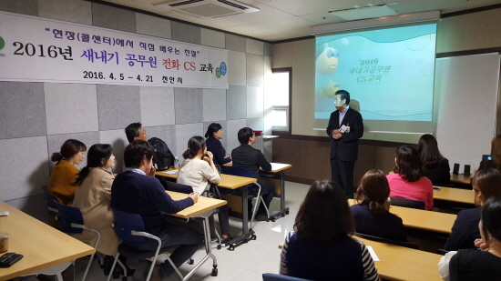 충남 천안시는 2015년∼2016년 신규 임용된 새내기 공무원 116명을 대상으로 친절한 전화응대를 통해 시민들에게 큰 호응을 얻고 있는 ‘천안시 콜센터’ 근무체험을 실시하고 있다.