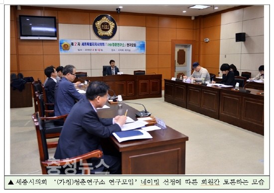 세종특별자치시의회 의원 (가칭) 청춘연구소 연구모임 (대표 이태환 의원)은 지난 19일 시의회 소회의실에서 두 번째 회의를 갖고 세종시 청년일자리 창출 및 문화사업 발굴을 위한 연구모임의 명칭을‘청춘발전소’로 선정하고 힘찬 출항을 예고했다.