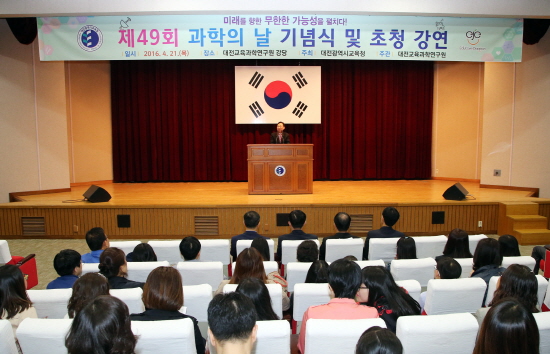 대전교육과학연구원(원장 정용하)은 21일(목) 오후 3시부터 5시 30분까지 2층 강당에서 4월 과학의 달을 맞이하여 학생과 학부모, 교원들에게 과학기술의 중요성을 인식시키기 위해 제49회 과학의 날 기념식 및 초청강연을 갖는다.