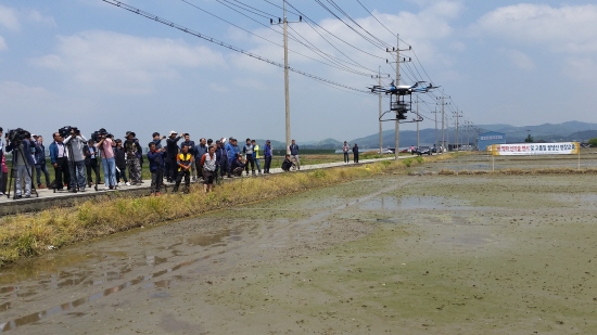 아산시, 드론사용 볍씨 직파 신기술 연시회 열어