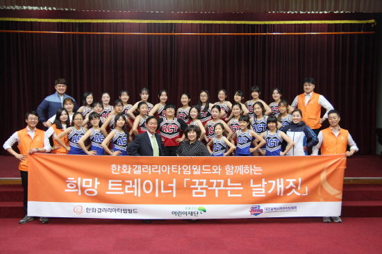희망 트레이너 ‘꿈꾸는 날개짓’은 (주)한화갤러리아타임월드와 초록우산어린이재단, 대전광역시치어리딩협회가 대전지역 아동들의 건강과 소통의 장을 마련할 수 있도록 준비한 청소년 치어리딩 프로그램이다.