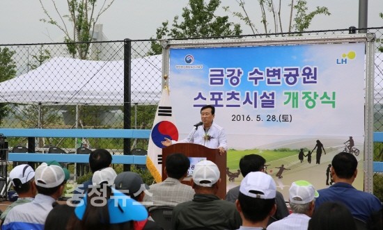 이충재 행정중심복합도시건설청장이 28일 세종시 대평동에서 금강 수변공원 스포츠시설 개장식을 개최했다.