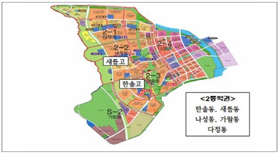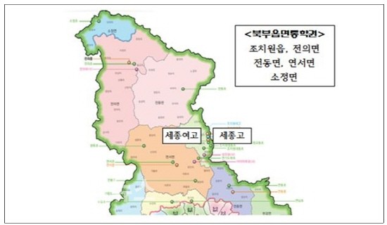 통학권은 세종시 생활권을 기준으로 타당성 연구 결과와 배정방법 정책연구 결과를 반영했다.