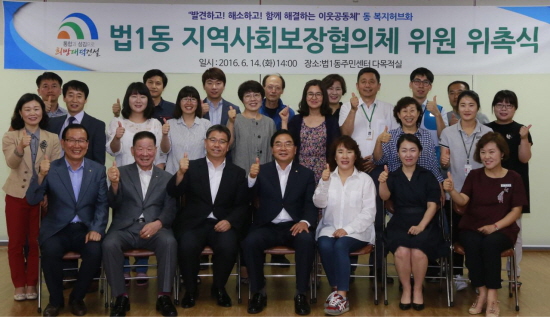 대전 대덕구 박수범 구청자은 14일 법1동주민센터(동장 김원규) 다목적실에서 동(洞) 지역사회보장협의체 위원 23명에 대한 위촉식 자리에서 구청장이 직접 위촉장을 수여했다고 밝혔다. 사회보장 대상·자원 발굴 및 연계, 지역보호체계 구축 운영 등을 주요 임무로 하는 동지역사회보장협의체는 지역에서 발생하는 복지 문제를 지역주민들이 주도해 해결하는 민·관협력체로써, 위원으로서는 통장, 주민자치위원, 교육복지사, 종교단체, 동 복지위원, 사회복지기관 등이 참여하고, 임기는 2년이며 연 4회 이상 모임을 갖고 관련 지식·정보를 교환한다.