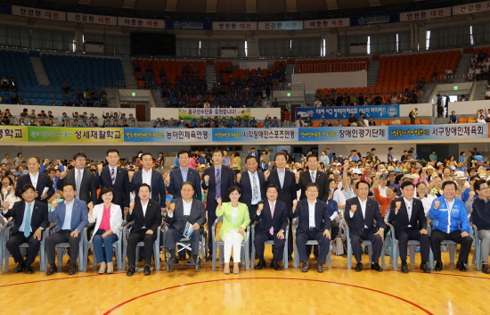 대전광역시장애인체육회가 주관하는 제27회 대전장애인생활체육대회 개회식에 지역 정치인들이 총출동했다.