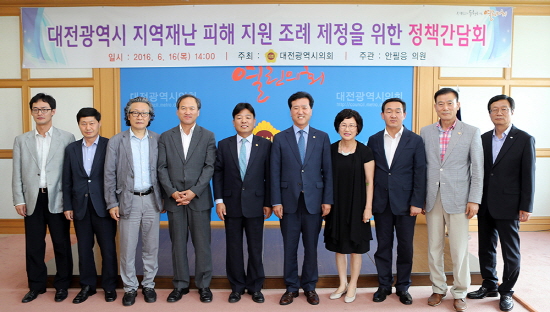대전시의회 안필응 복지환경위원장(동구3, 새누리당)이 16일 시의회 대회의실에서‘대전광역시 지역재난 피해 지원 조례 제정 방안 모색’을 위한 정책간담회를 개최했다.