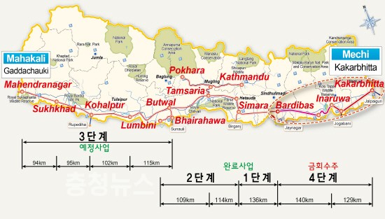 네팔 동서연결 고속전기철도 1~2단계 이어 4단계(269km) 수주... 854만 달러 규모