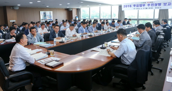 충남 천안시는 27일 시청 중회의실에서 본청을 비롯한 구청, 사업소, 읍‧면‧동 등 5급 이상 간부 109명이 참석한 가운데 2016년 상반기 주요업무 추진상황 보고회를 개최했다고 밝혔다.
